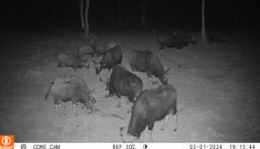 Die neu geschaffenen Mineral- und Salzleckstellen werden rege besucht. Am häufigsten sind dort Sambar-Hirsche anzutreffen (Reihe 1) gefolgt von Gaur, die größten lebenden Vertreter der Rinder (Reihe 2), Elefanten (Reihe 3, links), Muntjak (Reihe 4, links) und Wildschweinen (Reihe 4, rechts) (© alle Bilder DNP & WWF Thailand)